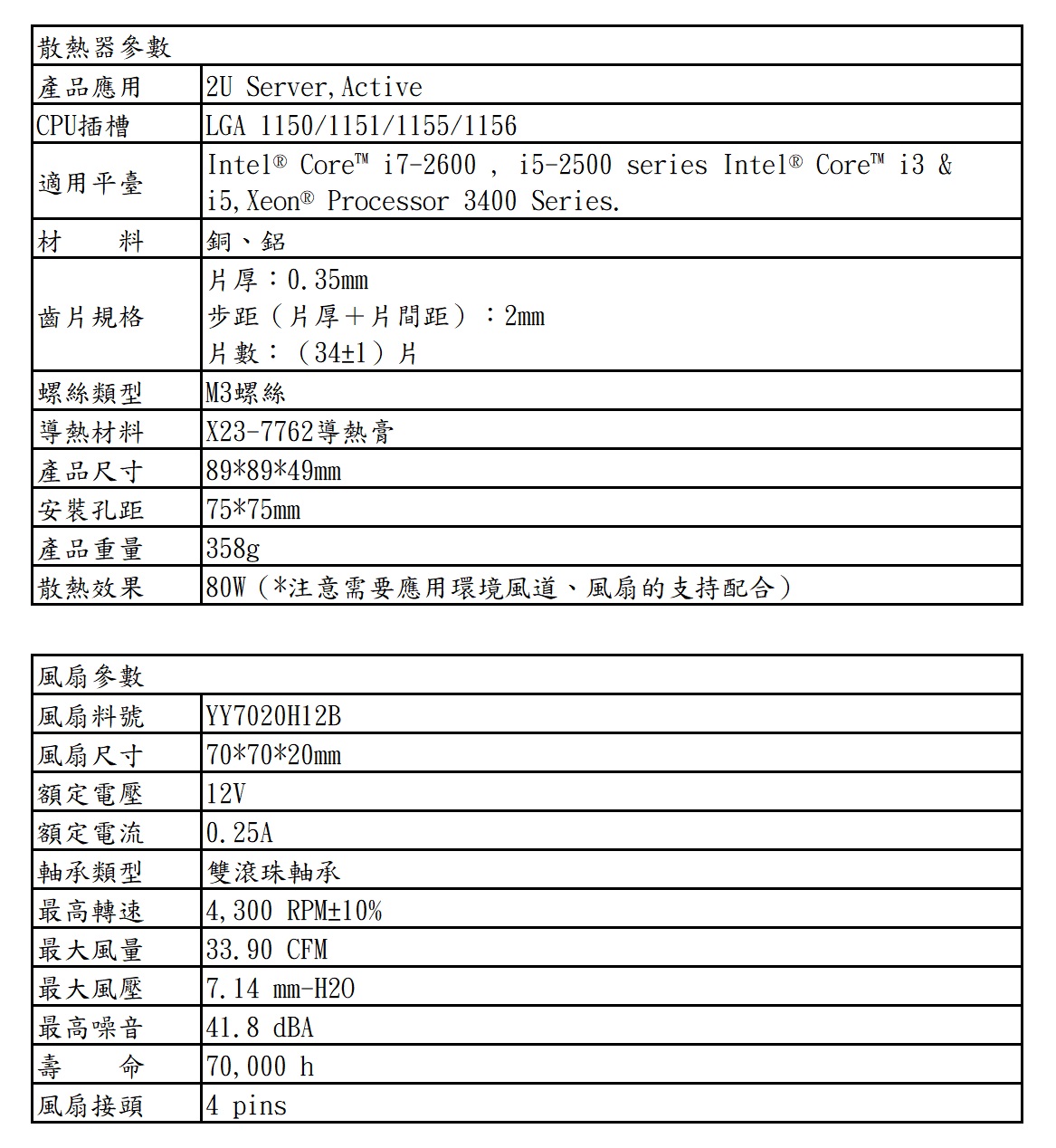 標準版伺服器散熱器