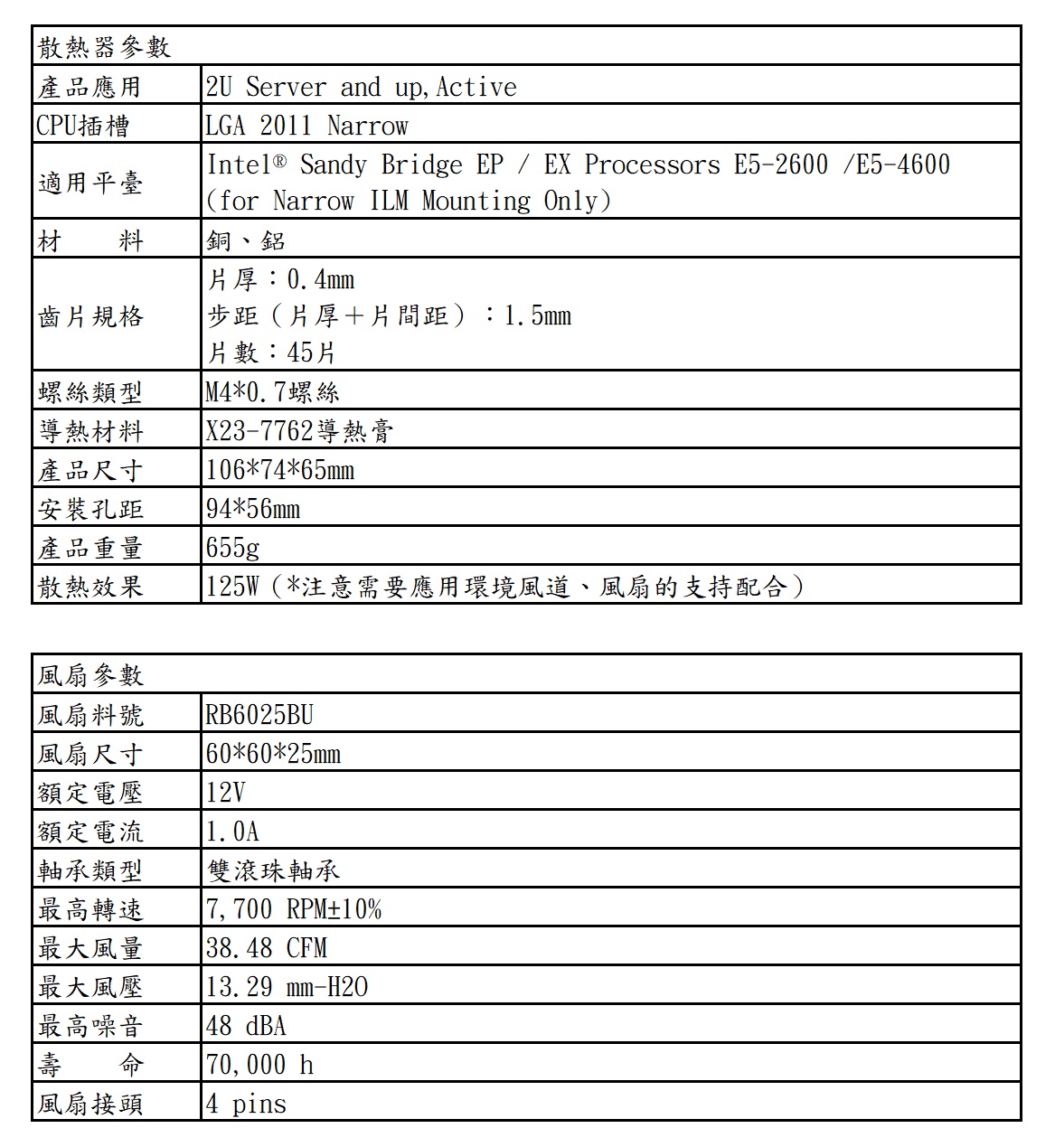 標準版伺服器散熱器